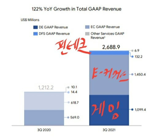 핀테크 사업도 이커머스 사업과 마찬가지로 세 자리의 성장률을 보여주고 있습니다. 계좌조차 없는 사람들이 많은 동남아 사람들을 고려했을 때 이 성장세가 이어질 가능성이 크다고 생각합니다.