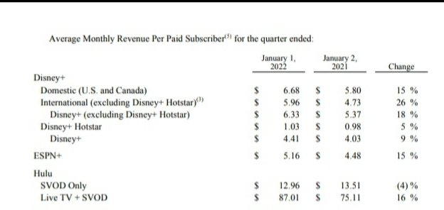 여기서 디즈니 플러스의 장점은 끝나지 않습니다. 디즈니 플러스가 구독자를 모으는 와중에 디즈니 플러스의 구독 자당 평균 수익이 증가 중입니다. 이는 디즈니 플러스 말고도 ESPN plus에서도 마찬가지입니다. 이는 디즈니가 외형성장에만 집중해서 놓치기 쉬운 내실 다지기도 잘하고 있다는 뜻입니다.