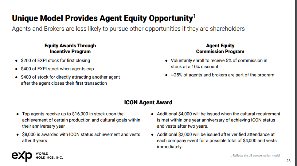 심지어 1년마다 특정한 목표를 달성하면 16000달러의 주식을 받게 됩니다. 그리고 다른 에이전트를 expi로 설득해 데려오게 되면 초청된 에이전트의 판매 수익의 일부분을 초청한 에이전트에게 주게 되어, expi의 에이전트 숫자들을 점점 늘려나갈 수 있습니다.